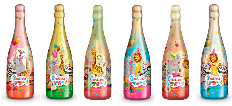 Яркий и привлекательный дизайн лимонадов "Веселые друзья" будет прекрасным украшением праздничного детского стола!